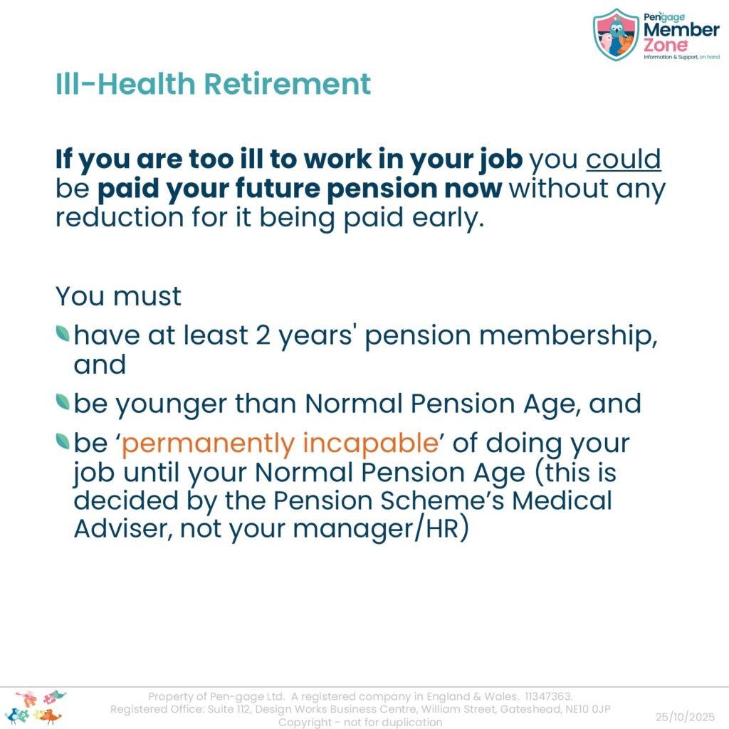 When your future pension income is paid to you before Normal Pension Age because you pass the rules for being too ill to work in your present job now and until Normal Pension Age (for the current, 2015 Scheme), also known by its initials, IHR