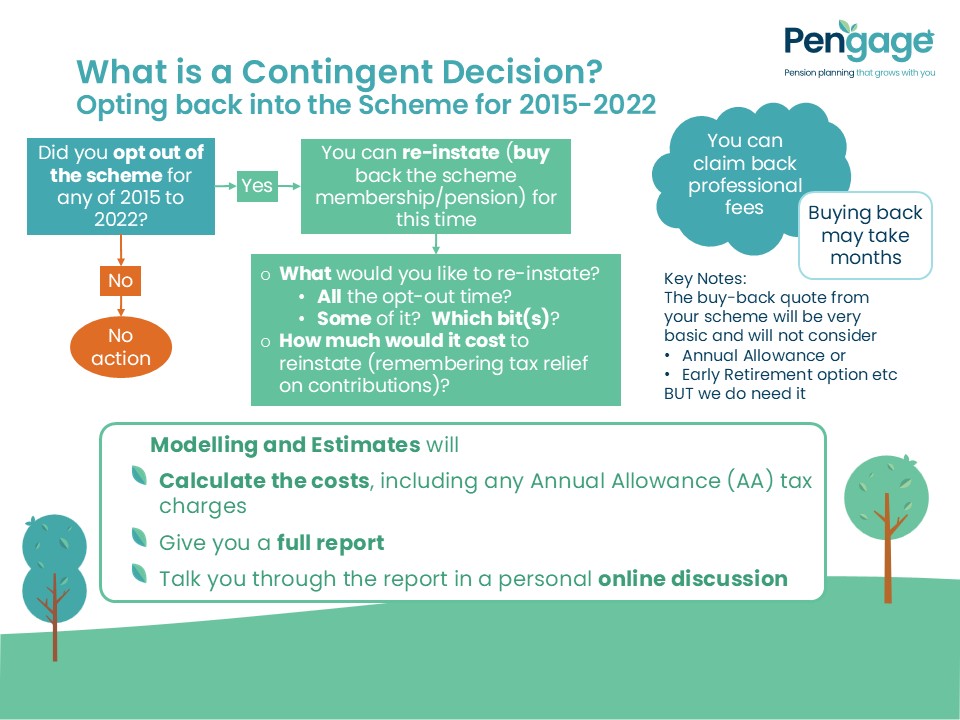A decision you made based on the circumstances at the time, but would have made differently if you’d had the options available from the McCloud Remedy is a Contingent Decision – and you can now change that decision